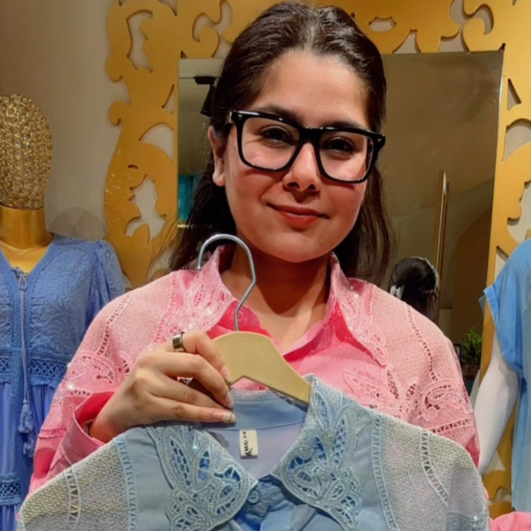Elegant cotton shirt featuring delicate net detailing and embellished with fine Swarovski crystals; gives a refined, luxe look.